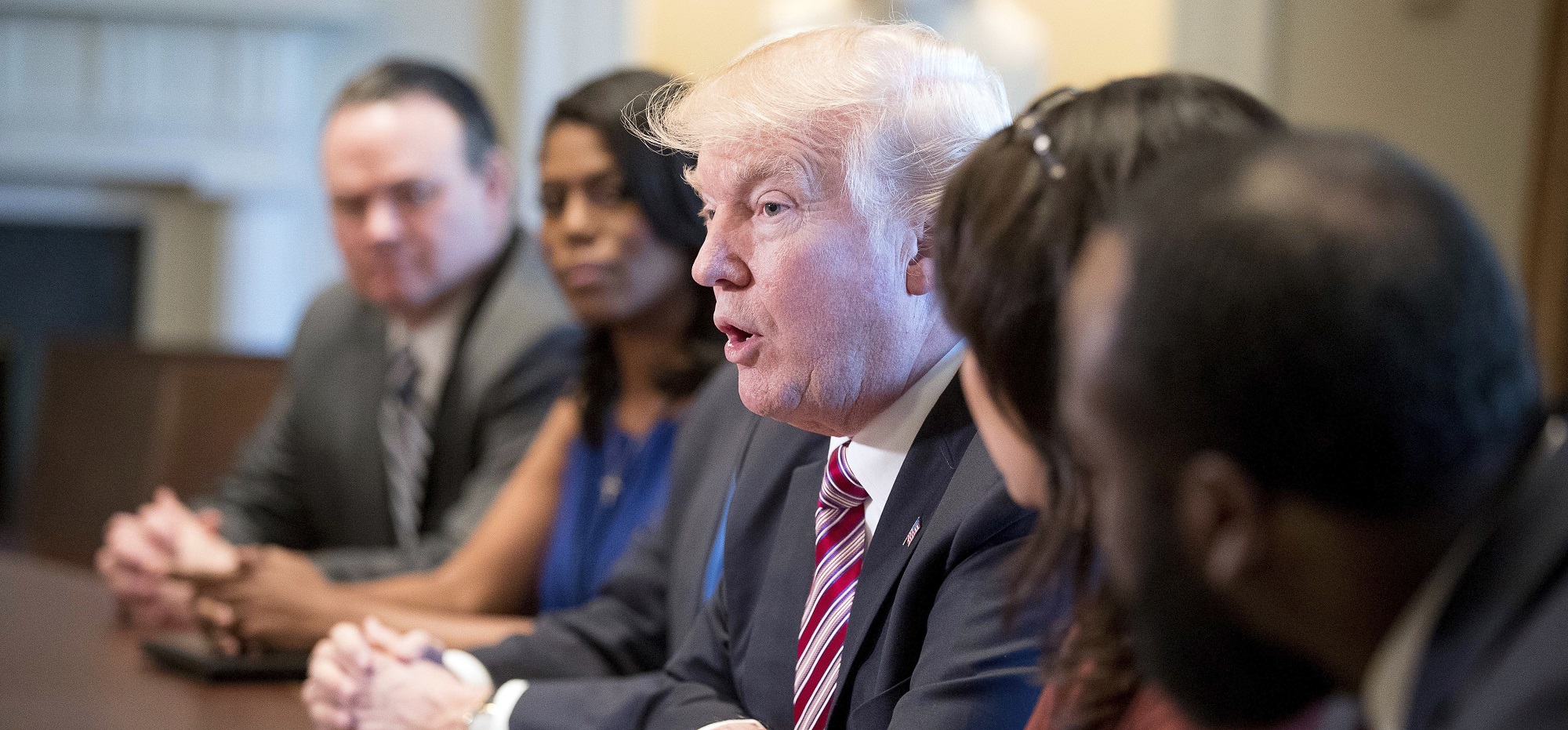 FILE – In this March 22, 2017, file photo, President Donald Trump meets with members of the Congressional Black Caucus in the Cabinet Room of the White House in Washington. On the campaign trail last year, then-Republican presidential nominee Donald Trump sought the support of black voters by asking them, “What the hell do you have to lose?” An answer came during the Congressional Black Caucus’ annual legislative conference this past week: Everything. (AP Photo/Andrew Harnik, File)