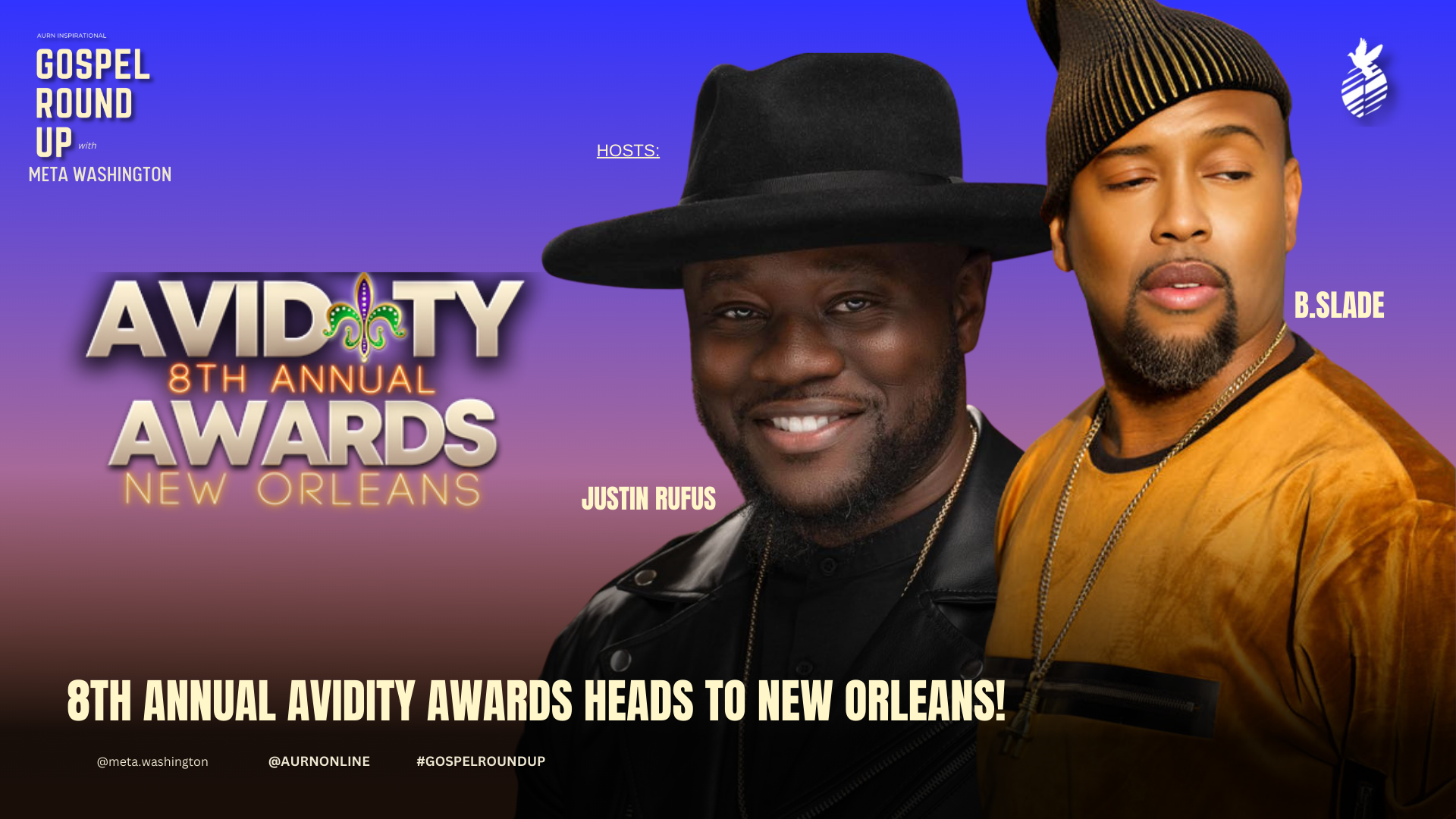 The Avidity Awards, brainchild of founder and CEO Derrick Huggins, is an event that celebrates independent gospel music. The awards ceremony celebrates the careers of independent gospel artists, industry professionals, and creatives, and aims to expand the reach of gospel music to non-traditional audiences. The 8th Annual Avidity Awards will be held in New Orleans from October 12–15, 2023. The live taping will take place on Saturday, October 14, at the Jefferson Performing Arts Center in Metairie, Louisiana, and will be hosted by BSlade, who will also perform for the event. This year’s event will emphasize mental health awareness in the Black community.