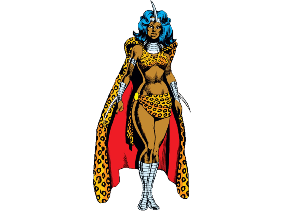 Madam Slay first appeared in Jungle Action Vol 2 #18 (1975). She does not appear to be a mutant or have supernatural powers but she can command leopards. The leopards may be trained or this could be her other worldly ability. Again, that part of her character wasn’t really developed but she uses the leopards to do her bidding, even if it means slaughtering people. She was Erik Killmonger’s lover and preserved his body with secret herbs after Killmonger was defeated and killed in the comics.