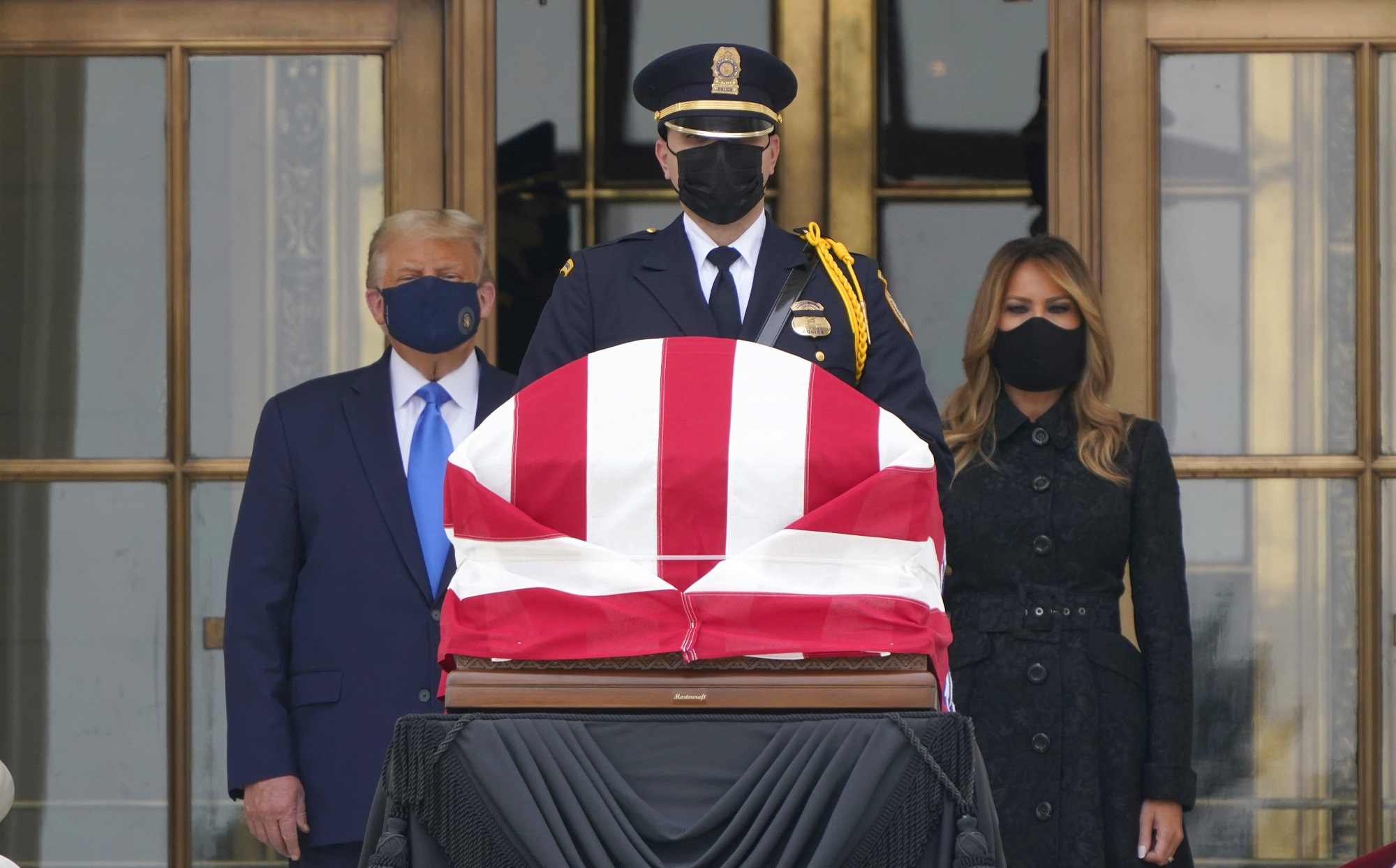 President Trump and First Lady wore masks when they payed last respects to Ruth Bader Ginsberg, as the late Supreme Court Justice lay in repose in the Supreme Court building.