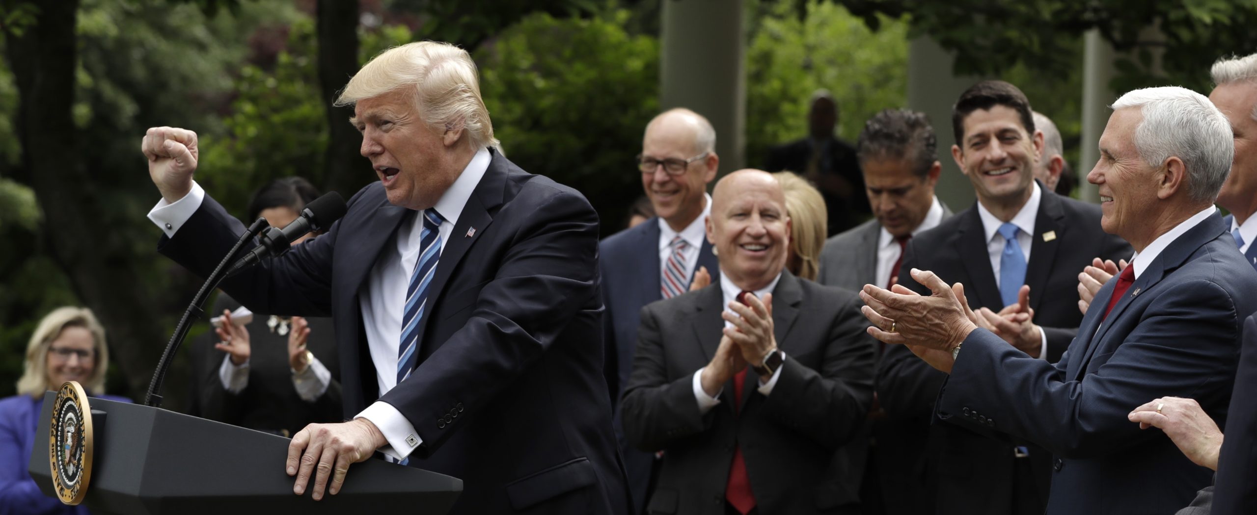 President Donald Trump gestures as he speaks in the Rose Garden of the White House in Washington, Thursday, May 4, 2017, after the House pushed through a health care bill. (AP Photo/Evan Vucci)