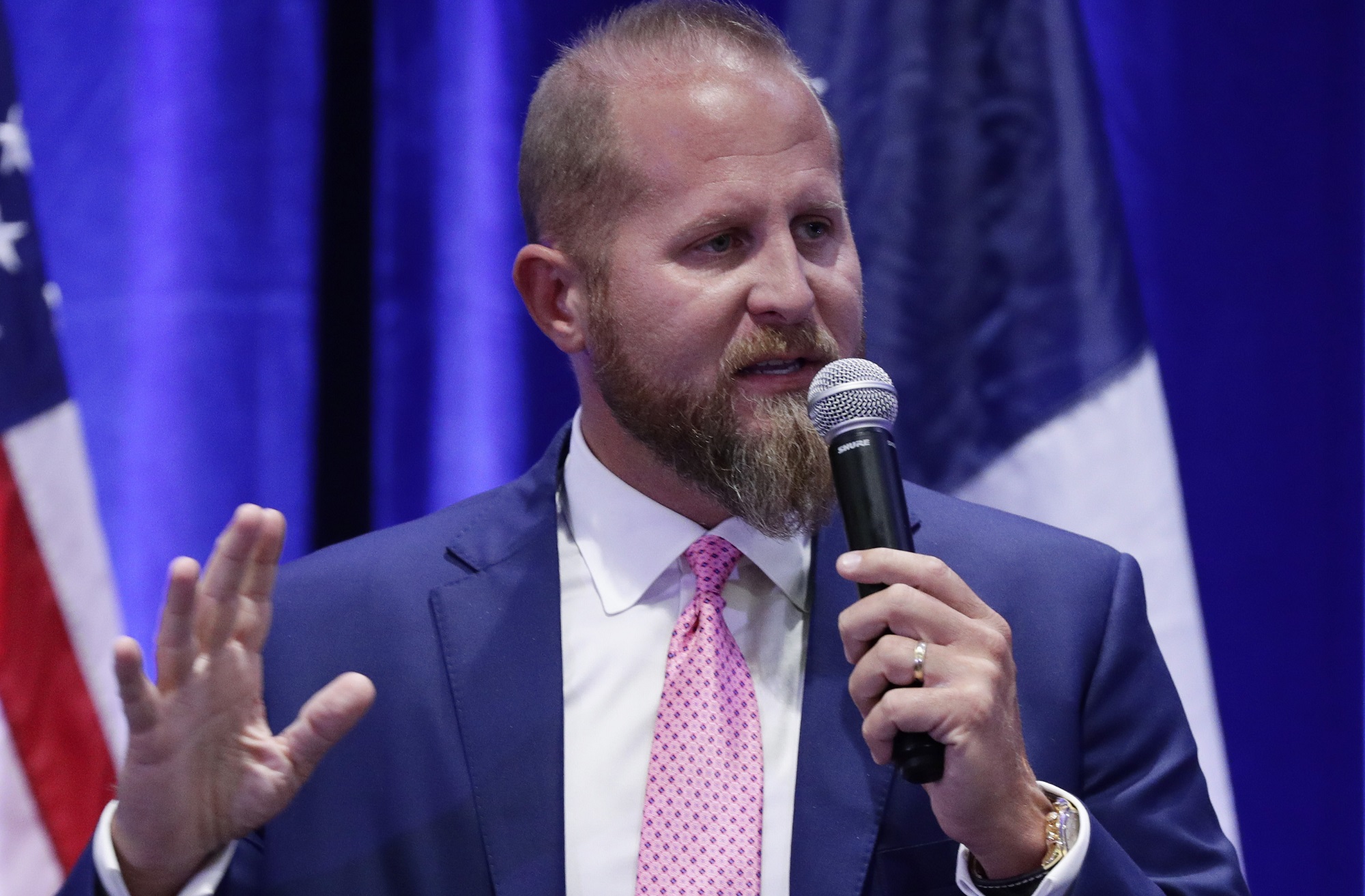Brad Parscale, campaign manager to President Donald Trump, speaks to supporters during a panel discussion, Tuesday, Oct. 15, 2019, in San Antonio. (AP Photo/Eric Gay)